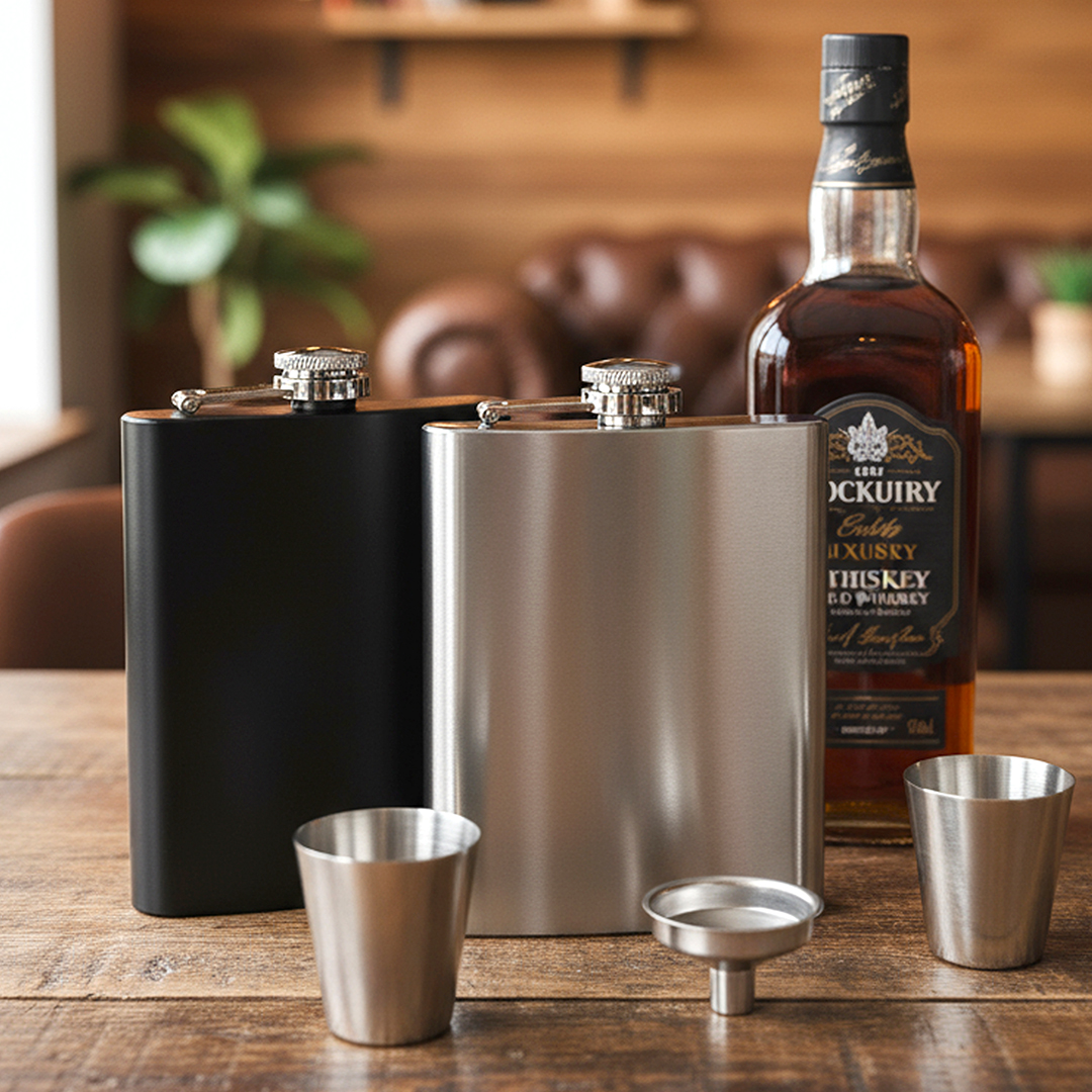 The DECANT 8 is an elegant gift set that includes a flask, two cups and a funnel, making it ideal for lovers of fine drinks. The flask is made of stainless steel 304 with a single wall construction and a 230 ml capacity, while the accompanying accessories are also made of the same high-quality material, ensuring durability and reliability. This practical and visually appealing set comes in an elegant gift box, ready for both corporate and personal gifting. Key features: Material: stainless steel 304 • Construction: single wall • Capacity: 230 ml • Set includes: flask, 2 cups and funnel • Gift box • Not suitable for dishwasher • Not suitable for microwave use.