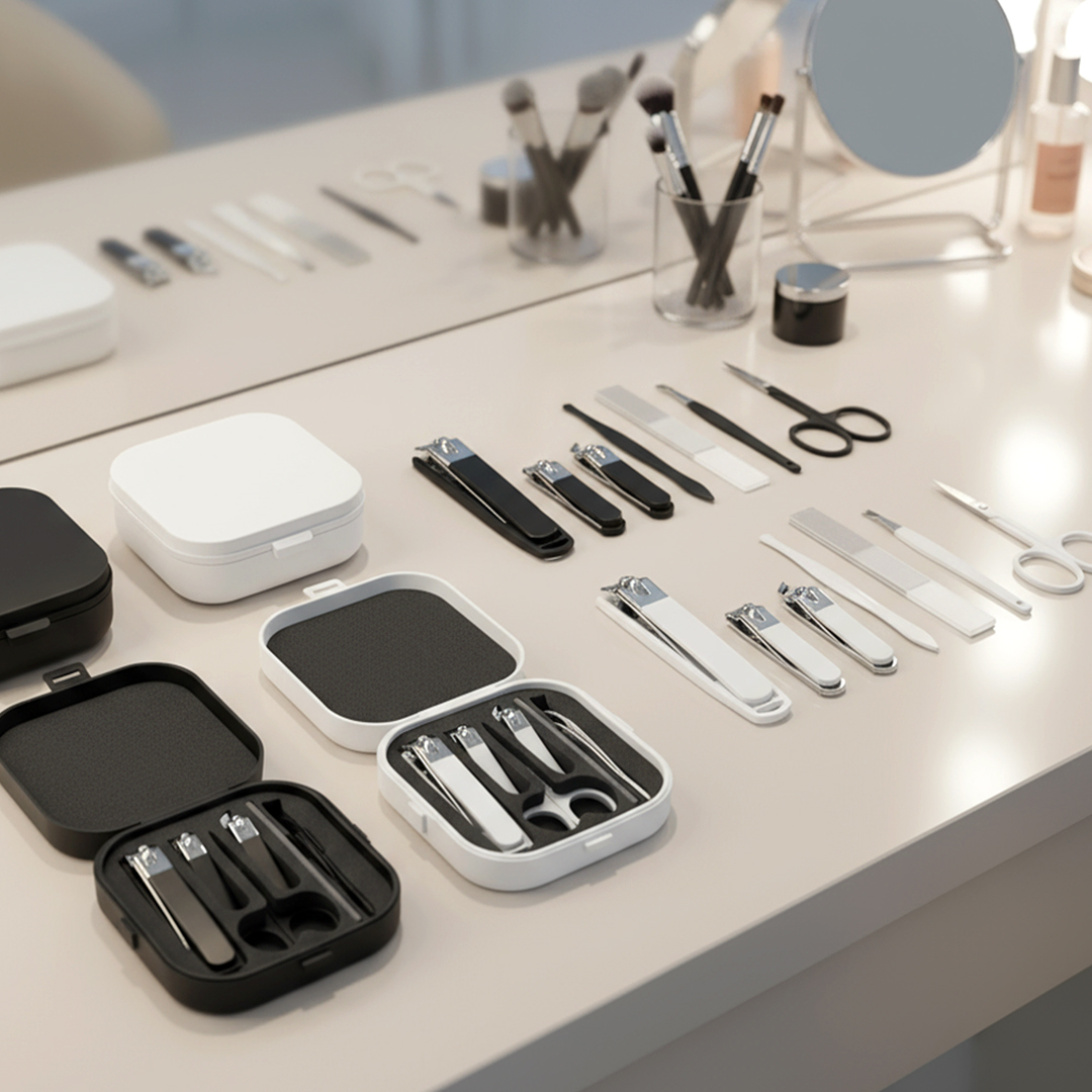 FAUNA is a manicure set with stainless steel elements, designed for everyday nail care and maintenance. The set includes scissors, three clippers, a nail file, tweezers, and a cuticle pusher, while the plastic case allows for easy carrying and protection of the tools. An additional strap complements the design and makes it convenient to transport. The set is supplied in a gift box, making it an excellent promotional gift for beauty and lifestyle campaigns. Key features: Material: plastic, stainless steel • Includes: scissors, 3 nail clippers, nail file, tweezers, cuticle pusher • Plastic case • Carrying strap • Gift box.