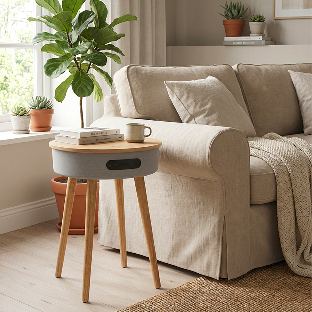 Smart desk with an integrated speaker and wireless charging, designed for everyday use in offices, business environments or as a modern promotional product. It supports wireless charging up to 15 W and delivers sound through a built-in 7 W BT speaker. Supplied in a gift box with a Type-C charging cable included. Key features: Smart desk with speaker and wireless charging • Wireless charging up to 15 W • Speaker power 7 W • Operating range up to 10 m • Charging time up to 4 hours • Playing time up to 5 hours • Type-C charging cable included • Gift box.