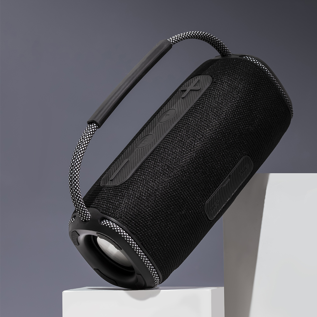 Wireless speaker with 10 W output power, designed for music playback in home, office or outdoor environments. It features LED changing colour lights on both sides of the speaker, adding a dynamic visual effect during use. The 1800 mAh rechargeable battery ensures reliable performance, while multiple ports provide flexible connectivity options. Supplied in a gift box with a Type-C charging cable included. Key features: Wireless speaker • Speaker power 10 W • BT version 5.3 • Operating range up to 10 m • Rechargeable battery capacity 1800 mAh • Charging time 2 hours • Playing time up to 5 hours • LED changing colours light (both sides) • Ports: AUX, USB, TF • Type-C charging cable included • Gift box.