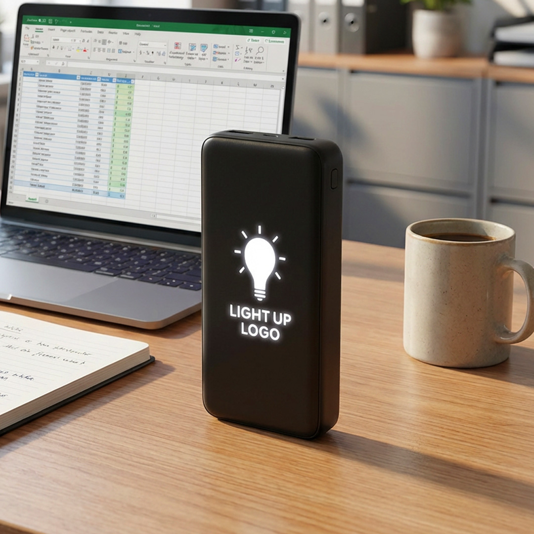 ODIN 10 PLUS power bank with built-in cables is a practical and visually distinctive solution for everyday device charging. It stands out with the option of laser engraving that creates a light-up logo, making it an excellent choice for premium branding and promotional use. Built-in Type-C, Lightning, and USB-A cables allow easy charging of multiple devices without the need for extra cables, while the power bank itself is charged via a USB-A cable. Its compact design and wide compatibility make it ideal for use on the go, travel, and corporate gifting. Specifications: Battery capacity: 10.000 mAh • Type-C-1 input: DC 5V/2A • Type-C-2 output: DC 5V/2A • USB-A cable input: DC 5V/2A • USB-A output: DC 5V/2A • Built-in Type-C / Lightning cable output: DC 5V/2A • Power bank charging via USB-A cable • Light-up logo (laser engraving).