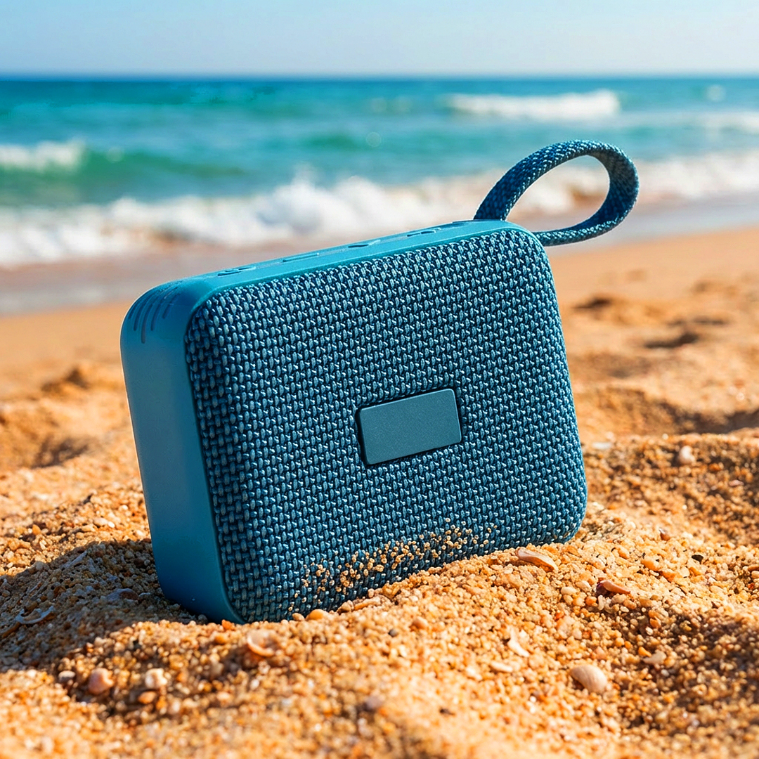 Wireless speaker with 5 W output power and IPX7 protection, designed as a practical promotional product for use in various conditions, including outdoor activities and events. The water-resistant construction and carrying handle make it a functional corporate gift for active users. Supplied in a gift box with a Type-C charging cable included. Key features: Wireless speaker • Speaker power 5 W • IPX7 water resistance • BT version 5.4 • Operating range up to 10 m • Rechargeable battery capacity 900 mAh • Playing time up to 5 hours • Carrying handle • Type-C charging cable included • Gift box.