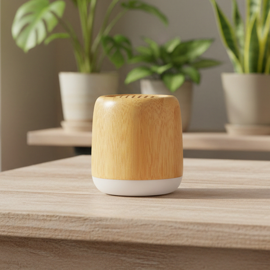 Wireless speaker with 3 W output power, compact and practical as a promotional product for everyday use at the office or at home. The lighting mode adds a visual effect during use, making it an attractive choice for corporate gifting and promotional campaigns. Supplied in a gift box with a Type-C charging cable included. Key features: Wireless speaker • Speaker power 3 W • BT version 5.2 • Operating range up to 10 m • Lighting mode • Rechargeable battery capacity 300 mAh • Charging time up to 3 hours • Playing time up to 4 hours • Type-C charging cable included • Gift box.